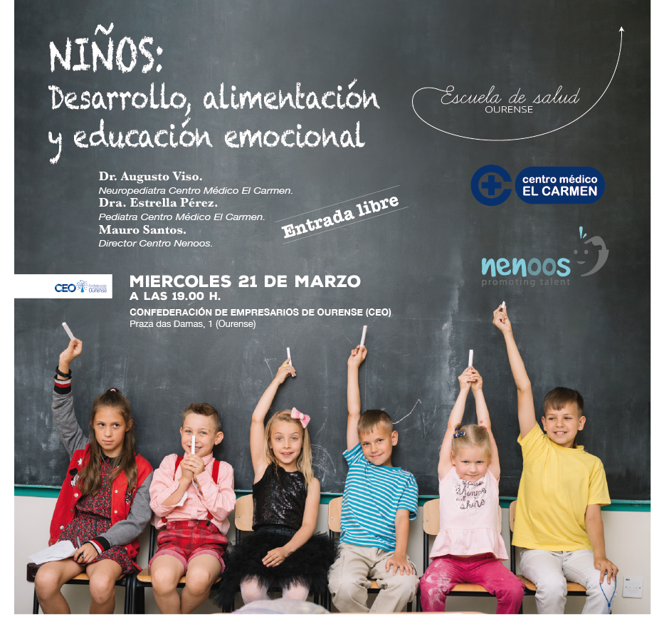 - Mauro Santos, coordinador del centro Nenoos y habitual colaborador de la Escuela de salud, que abordará la educación emocional: enseñar a los pequeños a reconocer y expresar sus emociones, para que en el futuro sean adultos psicológicamente sanos y con una autoestima fuerte.